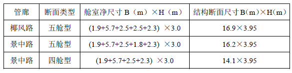 本次設(shè)計(jì)綜合管廊根據(jù)入廊管線情況與建設(shè)條件,管廊斷面尺寸為: